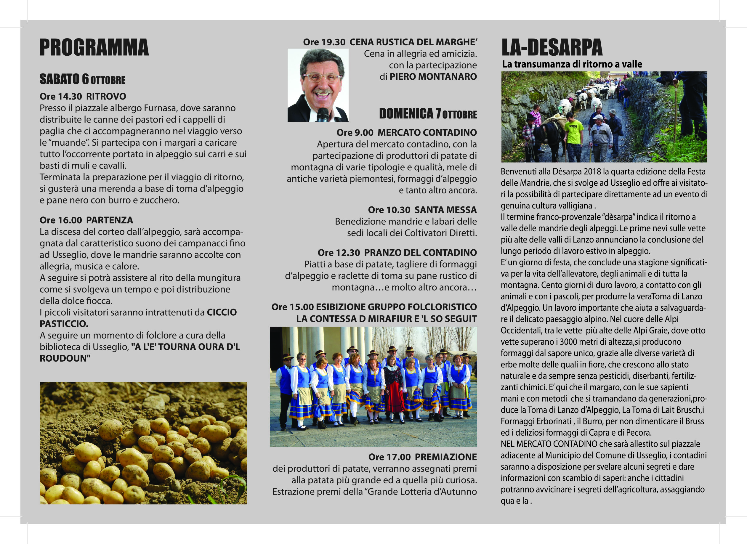Festa della transumanza e della Patata di montagna 06 ottobre 2018 Pro-Loco-Usseglio Eventi Usseglio (0) SABATO E DOMENICA 6/7 OTTOBREFesta della transumanza e della Patata di montagna.