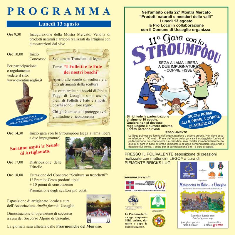 LUNEDÌ 13 AGOSTO 22ª Mostra Mercato dei Prodotti naturali e Mestieri delle Valli